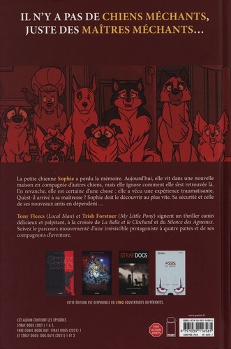 Sophie ne se souvient plus de ce qu'il s'est passé. Comment est-elle arrivée dans cette maison ? Qui est ce nouveau maître qui prend tellement bien soin de tous ces chiens ? Où est passée sa maîtresse ? La petite Sophie ne s'en souvient pas mais ce n'est pas sa faute : il n'y a pas de mauvais chiens, juste de mauvais maîtres. Avec STRAY DOGS, plongez dans un thriller canin aussi adorable que terrifiant, à mi-chemin entre La Belle et le Clochard et Le Silence des Agneaux. Le one-shot Stray Dogs est l'un des plus grands succès d'Image Comics (la principale maison d'édition derrière Marvel et DC) en 2021. Les auteurs, particulièrement connus pour leur travail sur la franchise Mon Petit Poney, nous offre un style graphique très inspiré par les dessins animés des années 80. Un décalage malin qui tranche avec un scénario lorgnant du côté thriller, avec pour protagoniste humain un serial killer qui récupère les chiens de ses victimes.