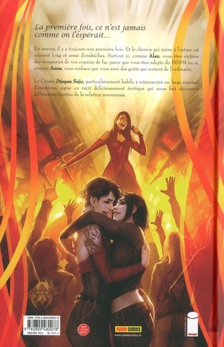 La première fois, ce n'est jamais comme on l'espérait... En amour, il y a toujours une première fois. Et le chemin qui mène à l'extase est souvent long et semé d'embûches. Surtout si, comme Alan, vous êtes victime des moqueries de vos copains de fac parce que vous êtes adepte de BDSM ou si, comme Anne, vous réalisez que vous avez des goûts qui sortent de l'ordinaire. Le Croate Stjepan Sejic, particulièrement habile à retranscrire un large éventail d'émotions, signe un récit délicieusement érotique qui nous fait découvrir différentes facettes de la relation amoureuse.