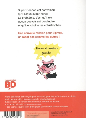 Super-Cochon est convaincu qu'il est un super-héros ! Le problème, c'est qu'il n'a aucun pouvoir extraordinaire et qu'il enchaîne les catastrophes. Une nouvelle mission pour Bipmax, un robot pas comme les autres !