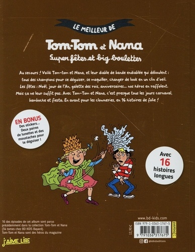 Au secours ! Voilà Tom-Tom et Nana et leur diable de bande endiablée qui déboulent : tous des champions pour se déguiser, se maquiller, changer de look en un clin d'oeil. Les fêtes : Noël, jour de l'An, galette des rois, anniversaires... nos héros en raffolent. Mais ça ne leur suffit pas. Avec Tom-Tom et Nana, c'est presque tous les jours carnaval, bamboche et fiesta. En avant pour les clowneries, en 16 histoires de folie !