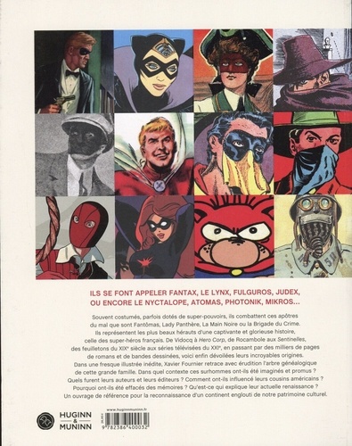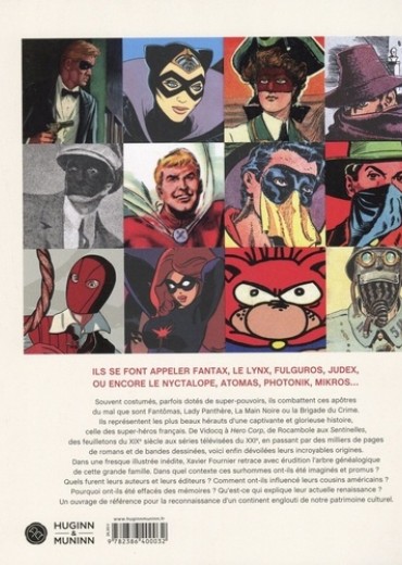 Ils se font appeler Fantax, Le Lynx, Fulguros, Judex, ou encore Le Nyctalope, Atomas, Photonik, Mikros... Souvent costumés, parfois dotés de super-pouvoirs, ils combattent ces apôtres du mal que sont Fantômas, Lady Panthère, La Main Noire ou la Brigade du Crime. Ils représentent les plus beaux hérauts d'une captivante et glorieuse histoire, celle des super-héros français. De Vidocq à Hero Corp, de Rocambole aux Sentinelles, des feuilletons du XIXe siècle aux séries télévisées du XXIe, en passant par des milliers de pages de romans et de bandes dessinées, voici enfin dévoilées leurs incroyables origines. Dans une fresque illustrée inédite, Xavier Fournier retrace avec érudition l'arbre généalogique de cette grande famille. Dans quel contexte ces surhommes ont-ils été imaginés et promus ? Quels furent leurs auteurs et leurs éditeurs ? Comment ont-ils influencé leurs cousins américains ? Pourquoi ont-ils été effacés des mémoires ? Qu'est-ce qui explique leur actuelle renaissance ? Un ouvrage de référence pour la reconnaissance d'un continent englouti de notre patrimoine culturel.