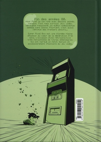 Loïc Clément (les contes des coeurs perdus) et Boris Mirroir (Rob) offrent une encyclopédie toute personnelle, drôle, tendre et addictive sur les vieux jeux vidéo des années 80. Insérez une pièce et laissez-vous guider. Issu d'une famille de classe moyenne, le jeune Pixel est passionné de Zelda et Megaman. Il est entouré d'une fameuse bande de potes : Guilhem, Jérôme, Elodie et enfin du Scooby gang, un groupe composé des geeks de l'école pour qui le sport est un gros mot. Des récits dessinés tantôt de manière classique tantôt en Pixel Art à dévorer sans modération.