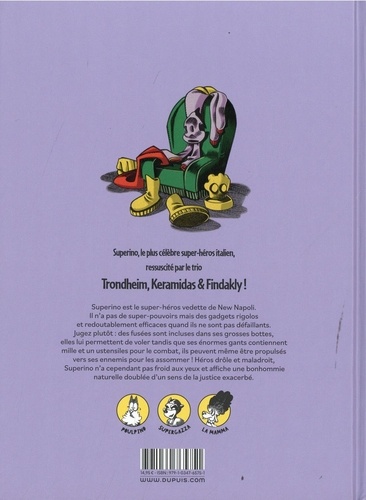 Superino est le super-héros vedette de New Napoli. Il n'a pas de super-pouvoirs mais des gadgets rigolos et redoutablement efficaces quand ils ne sont pas défaillants. Jugez plutôt : des fusées sont incluses dans ses grosses bottes, elles lui permettent de voler tandis que ses énormes gants contiennent mille et un ustensiles pour le combat, ils peuvent même être propulsés vers ses ennemis pour les assommer ! Héros drôle et maladroit, Superino n'a cependant pas froid aux yeux et affiche une bonhommie naturelle doublée d'un sens de la justice exacerbé.