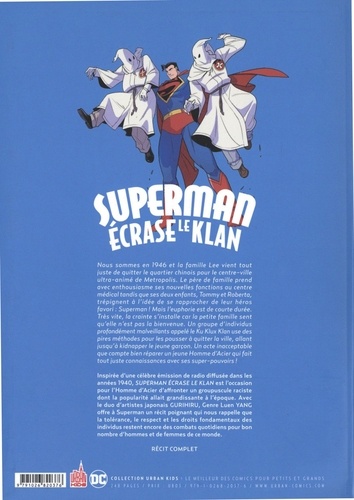 Nous sommes en 1946 et la famille Lee vient tout juste de quitter le quartier chinois pour le centre-ville ultra-animé de Metropolis. Le père de famille prend avec enthousiasme ses nouvelles fonctions au centre médical tandis que ses deux enfants, Tommy et Roberta, trépignent à l'idée de se rapprocher de leur héros favori : Superman ! Mais l'euphorie est de courte durée. Très vite, la crainte s'installe car la petite famille sent qu'elle n'est pas la bienvenue. Un groupe d'individus profondément malveillants appelé le Ku Klux Klan use des pires méthodes pour les pousser à quitter la ville, allant jusqu'à kidnapper le jeune garçon. Un acte inacceptable que compte bien réparer un jeune Homme d'Acier qui fait tout juste connaissances avec ses super-pouvoirs !
