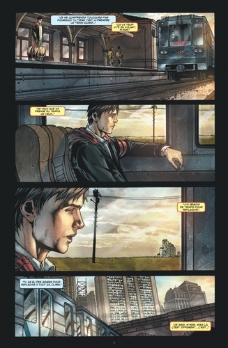 Clark Kent est différent. II peut voler, voir à travers les murs, brûler des objets grâce à sa vision. Il est un dieu parmi les Mortels, mais un dieu seul et sans raison d'être, sans idéal. Comme la plupart des jeunes de son âge, il ne sait pas ce qu'il veut faire de sa vie. Le sport, les sciences, la finance, les médias... Les possibilités semblent infinies... à l'unique condition qu'il conserve secrets ses pouvoirs et sa véritable nature. Mois lorsque le ciel s'assombrit pour laisser apparaître l'avant-garde d'une invasion de vaisseaux extra - terrestres, Clark devra choisir: se révéler à l'humanité et sacrifier tout espoir de mener une vie normale ou laisser le monde périr par sa faute. Superman Terre - Un offre au scénariste Joe Michael Straczynski(Wonder Woman, Before Watchmen, Babylon 5) l'occasion de réaliser un rêve d'enfant : écrire les aventures de son héros préféré. Passionné par l'Homme d'acier, le scénariste aborde une facette du personnage qui lui a toujours été chère : la transition du jeune homme vers son statut de super - héros. Inscrite dans les environnements très réalistes du dessinateur Shane Davis (Green Lantern), cette version de Superman apparaît comme l'une des plus modernes à ce jour.