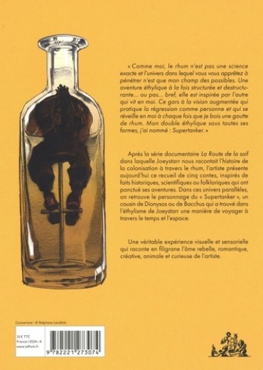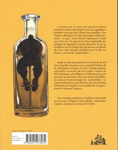 Après la série documentaire "La Route de la soif" dans laquelle Joeystarr nous racontait l'histoire de la colonisation à travers le rhum, l'artiste présente aujourd'hui ce recueil de cinq contes, inspirés de faits historiques, scientifiques ou folkloriques qui ont ponctué ses aventures. Dans ces univers parallèles, on retrouve le personnage du "Supertanker", un cousin de Dionysos ou de Bacchus qui a trouvé dans l'éthylisme de Joeystarr une manière de voyager à travers le temps et l'espace.