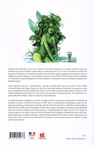 Symbole de l'absinthe, la Fée verte raconte en 24 étapes l'histoire de la plante absinthe (l'Artemisia absinthium) puis de l'apéritif auquel celle-ci a donné son nom. La Fée verte vous mène en Grèce à la rencontre d'Artémise, la farouche protectrice de l'absinthe, plante médicinale d'exception. Dans le sillage de cette fée reporter, vous surprenez, en Suisse, entre 1783 et 1797, le docteur Pierre Ordinaire et l'herboriste Suzanne-Marguerite Henriod affairés à transformer l'extrait d'absinthe médicinal en apéritif tonique. Vous n'ignorez rien des "casse-poitrine" décriés par Emile Zola dans L'Assommoir et du monde à l'envers décelé par Edgar Degas au café de la Nouvelle-Athènes. Précédant vos questions, notre muse magnétique révèle comment Van Gogh noie les ordres paternels dans Madame Espérance, Paul Verlaine piégé par Notre-Dame de l'oubli ou le verre sans fin de Toulouse-Lautrec. Vous découvrez au petit matin Oscar Wilde vanter le troisième oeil de l'absinthe. Accusée de mener à l'épilepsie, de rendre aveugle ou d'être un agent de la tuberculose, l'absinthe est prohibée en Suisse en 1910 et en France en 1915. Puis, la communauté scientifique revenue de son jugement négatif sur la thuyone, le principe actif de l'Artemisia absinthium, l'absinthe est réautorisée en terre helvète en 2005 et dans l'hexagone en 2011. Pour autant, l'absinthe n'est toujours pas réhabilitée dans l'inconscient collectif. Ernest Hemingway s'inquiétait déjà des effets pervers d'un sérum de vérité au goût de ver à bois. Selon le Dracula de Francis Ford Coppola, l'absinthe est baume de l'âme, fluide visionnaire et philtre amoureux. Karen & Hank Moody rêvent dans la série Californication de l'Isla Verde. Dans l'ombre d'une éternelle Fée des feintes, vous revenez autre de ce sidérant voyage dans l'espace-temps.