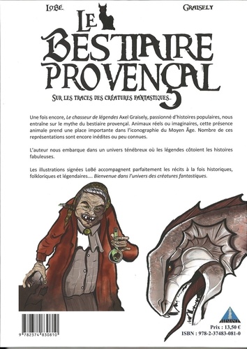 Une fois encore, le chasseur de légendes Axel Graisely, passionné d'histoires populaires, nous entraîne sur le mythe du bestiaire provençal. Animaux réels ou imaginaires, cette présence animale prend une place importante dans l'iconographie du Moyen Age. Nombre de ces représentations sont encore inédites ou peu connues. L'auteur nous embarque dans un univers ténébreux où les légendes côtoient les histoires fabuleuses. Les illustrations signées Lobé accompagnent parfaitement les récits à la fois historiques, folkloriques et légendaires ... . Bienvenue dans l'univers des créatures fantastiques.