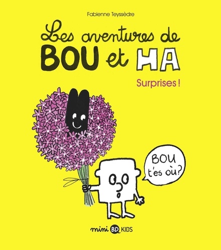 Pour son premier récit en bande dessinée, Fabienne Teyssèdre a créé deux personnages irrésistibles à la "Chapi-Chapo" : Bou et Ha. L'un est noir est filiforme, l'autre est blanc et trapu. Mais une passion les réunit : faire des blagues, jouer à cache-cache et se faire de surprises ! Quelque soit la situation de départ, Bou finit toujours par se cacher tandis que Ha le cherche partout. Quand enfin Bou surgit de sa cachette, il crie bien entendu : "Bou ! ", tandis que Ha, prenant peur, s'écrie : "Ha ! ". Un gag dont on ne se lasse pas : on sursaute de peur et de joie à la fois ! 7 histoires pleines d'onomatopées et de rebondissements : Le cadeau L'anniversaire Le frigo Le parapluie La tour Eiffel Le chat de la voisine Les crêpes