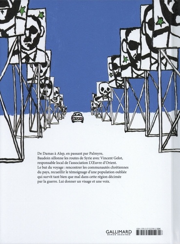 Sur la route et parmi les ruines, un portrait de la Syrie d'aujourd'hui. De Damas à Alep, en passant par Palmyre, Baudoin sillonne les routes de Syrie avec Vincent Gelot, responsable local de l'association L'Ouvre d'Orient. Le but du voyage : rencontrer les communautés chrétiennes du pays, recueillir le témoignage d'une population oubliée qui survit tant bien que mal dans cette région décimée par la guerre. Lui donner un visage et une voix.