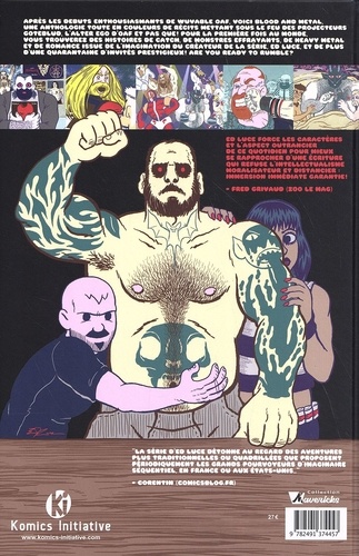 Après des débuts enthousiasmants de Wuvable Oaf, voici blood and metal. Une Anthologie toute en couleurs de récits mettant sous le feu des projecteurs goteblud, l'alter ego d'Oaf et pas que ! Pour la première fois au monde, vous trouverez des histoires de catch, de monstres effrayants, de heavy metal et de romance issue de l'imagination du créateur de la série, Ed Luce, et de plus d'une quarantaine d'invités prestigieux ! Are you ready to rumble ?