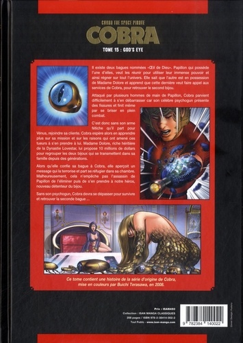 Cobra est contacté par une riche héritière habitant sur Vénus, Madame Dolore. Ce généreux mécène lui demande de retrouver la bague jumelle à la sienne. Les deux bagues, prenant le nom dil de Dieu, formeraient une paire qui donnerait des pouvoirs magiques à son porteur. Elle linvite donc à se joindre à elle sur Vénus pour plus dinformation. Le fait que Madame Dolore ait contacté Cobra ne reste pas inaperçu et alors quil préparait son départ pour Vénus, Cobra reçoit la visite de plusieurs assassins avec un curieux tatouage de papillon sur la main. Il réussit à sen débarrasser mais son psychogun se brise et devient inutilisable. Cobra part donc, sans son arme préférée, pour Vénus dans le but den apprendre plus sur cette mission. Une fois arrivé, Cobra fait la connaissance de Madame Dolore. Cette belle femme est persuadée quun certain Papillon en veut à sa vie et est très anxieuse depuis quelques temps.