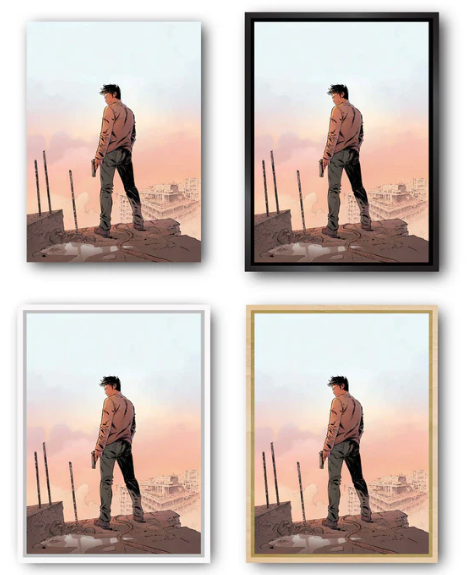 Nos caisses américaines en profil "L" sont fabriquées à la main en France avec du bois massif. Ces cadres offrent une esthétique élégante sans détourner l'attention de l'œuvre. Ils sont disponibles dans différentes finitions pour s'harmoniser avec l'univers des bandes dessinées.
