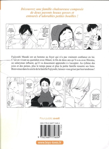 Bienvenue dans le monde de Tadaima, Okaeri, où il existe trois types de personnes : alpha, bêta et omega. Dans cette société pleine de préjugés, l'homoparentalité est difficilement acceptée, mais plus encore, la liaison amoureuse entre les différents types d'êtres humains.Hiromu, alpha, et Masaki, omega, allant à l'encontre de l'ordre établi, se sont mariés et ont eu un enfant. Heureusement, ce petit bout de chou fait fondre la terre entière, et il devient rapidement leur raison de vivre et d'avancer.