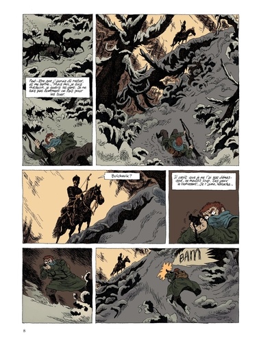 Transbaïkalie, hiver 1920. Ferdynand Ossendowski est en fuite, laissant derrière lui le souvenir de la belle Natacha Des loups de toutes sortes l'attendent sur sa route, mais aussi l'amitié avec le guerrier Djam Gordou. Sa science des armes et sa connaissance des âmes seront pour Ferdynand le garant de sa survie. Car, entre les gardes rouges et les cosaques blancs, il ne fait pas bon voyager dans ces contrées déchirées par la révolution... Taïga Rouge est le premier album du scénariste Arnaud Malherbe et du dessinateur Vincent Perriot.
