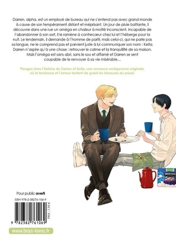 Darren, alpha, est un employé de bureau qui ne s'entend pas avec grand monde à cause de son tempérament distant et méprisant. Un jour de pluie battante, il découvre dans une rue un oméga en chaleur à moitié inconscient. Incapable de l'abandonner a son sort, il le ramène à contrecoeur chez lui et l'héberge pour la nuit. Le lendemain, il demande à l'homme de partir, mais celui-ci, qui ne parle pas sa langue, ne le comprend pas et parvient juste à lui communiquer son nom : Keita. Donen n'aspire qu'à une chose : retrouver le calme et la tranquillité de sa maison. Mais l'oméga est sans abri, sans le sou et affamé et Darren se sent coupable de le renvoyer à sa vie misérable...