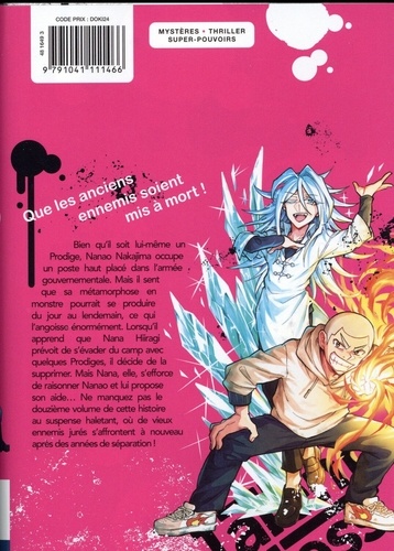 Que les anciens ennemis soient mis à mort ! Bien qu'il soit lui-même un Prodige, Nanao Nakajima occupe un poste haut placé dans l'armée gouvernementale. Mais il sent que sa métamorphose en monstre pourrait se produire du jour au lendemain, ce qui l'angoisse énormément. Lorsqu'il apprend que Nana Hiiragi prévoit de s'évader du camp avec quelques Prodiges, il décide de la supprimer. Mais Nana, elle, s'efforce de raisonner Nanao et lui propose son aide... Ne manquez pas le douzième volume de cette histoire au suspense haletant, où de vieux ennemis jurés s'affrontent à nouveau après des années de séparation !