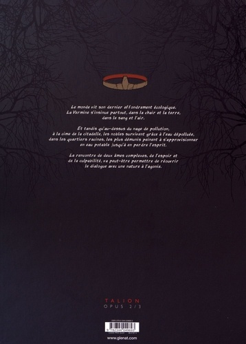 Le monde vit son dernier effondrement écologique. La Vermine s'insinue partout, dans la chair et la terre, dans le sang et l'air. Et tandis qu'au-dessus du nage de pollution, à la cime de la citadelle, les nobles survivent grâce à l'eau dépolluée, dans les quartiers racines, les plus démunis peinent à s'approvisionner en eau potable jusqu'à en perdre l'esprit. La rencontre de deux âmes complexes, de l'espoir et de la culpabilité, va peut-être permettre de réouvrir le dialogue avec une nature à l'agonie.