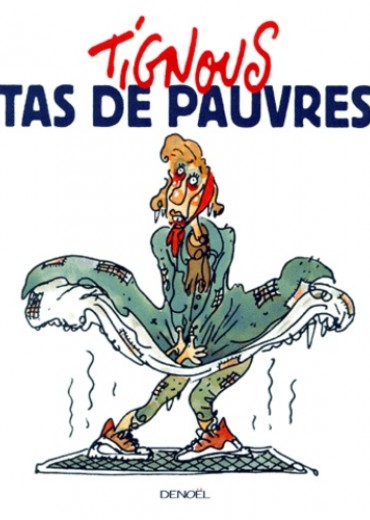 En deux coups de crayon, un pour les pauvres, un pour les riches, Tignous décrit l'humanité. Et on n'a pas envie d'en être. Mais regardons toujours. Surtout, regardons de l'endroit d'où Tignous dessine, lieu semblable à ces gabions qui, dans les réserves naturelles, permettent d'observer la faune sans l'effaroucher. Que voyons-nous par la fente ? Une jungle, mais sans fleurs luxuriantes ni cacatoès multicolores. Une jungle-décharge où les détritus s'organisent en lieux de vie avec mouches. De cette misère que le trait de Tignous festonne, s'élèvent cris et gémissements et, pire que tout, des mots d'espoir. Çà et là un ricanement révèle la présence d'un riche. Le dessin de Tignous nous montre que notre environnement rassurant n'est que trompe-l'œil, fausse perspective, toile peinte, cache-misère. C'est l'univers outré, grotesque, affligeant et brutal de son dessin qui est la réalité. Le pauvre n'a rien, le riche a beaucoup. Toute autre analyse n'est que papelardise de JT. Entrons donc chez les pauvres : " Toc ! Toc ! " - Qui est là ?
