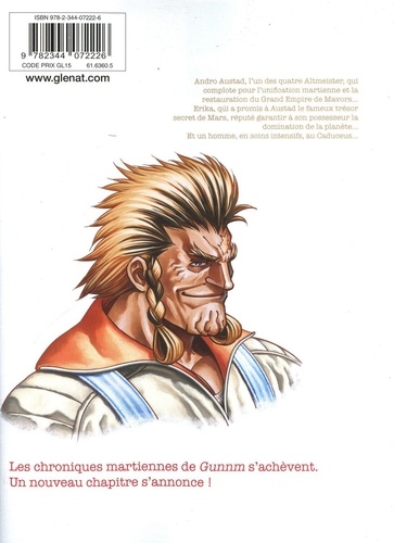 Andro Austad, l'un des quatre Altmeister, qui complote pour l'unification martienne et la restauration du Grand Empire de Mavors... Erika, qui a promis à Austad le fameux trésor secret de Mars, réputé garantir à son possesseur la domination de la planète... Et un homme, en soins intensifs, au Caduceus... Les chroniques martiennes de Gunnm s'achèvent. Un nouveau chapitre s'annonce !