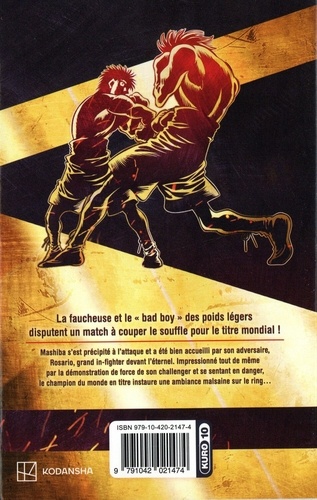La faucheuse et le "bad boy" des poids légers disputent un match à couper le souffle pour le titre mondial ! Mashiba s'est précipité à l'attaque et a été bien accueilli par son adversaire, Rosario, grand in-tighter devant l'éternel. Impressionné tout de mémé par la démonstration de farce de son challenger et se sentant en danger, le champion du monde en titre instaure une ambiance malsaine sur le ring...