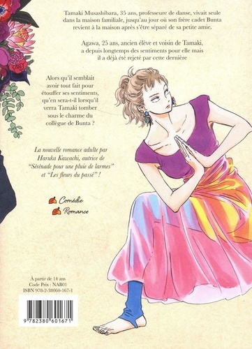 La nouvelle romance adulte par Haruka Kawachi, autrice de "Sérénade pour une pluie de larmes" et "Les fleurs du passé" ! Tamaki Musashibara, 35 ans, professeure de danse, vivait seule dans la maison familiale, jusqu'au jour où son frère cadet Bunta revient à la maison après s'être séparé de sa petite amie. Agawa, 25 ans, ancien élève et voisin de Tamaki, a depuis longtemps des sentiments pour elle mais il a été rejeté à deux reprises par Tamaki. Alors qu'il semblait avoir tout fait pour étouffer ses sentiments, qu'en sera-t-il lorsqu'il verra Tamaki tomber sous le charme du collègue de Bunta ?