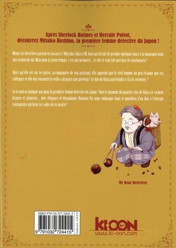 Après Sherlock Holmes et Hercule Poirot, découvrez Mitsuko Hoshino, la première femme détective du Japon ! Même les détectives partent en vacances ! Mitsuko, Saku et M. Iwai ont décidé de prendre quelques jours à la montagne dans une station de ski. Mais pour la jeune femme, c'est une première... et elle se sent vite percluse de courbatures ! Alors qu'elle est sur les pistes, accompagnée de son assistant, elle apprend que le vieil homme un peu étrange que ses collègues et elle ont rencontré la veille a disparu sans prévenir ! Le duo de Ginza parviendra-t-il à le retrouver ? Le travail ne manque pas pour la première femme détective du Japon ! Sous le glamour du quartier chic de Ginza se cachent drames et surprises... Avec élégance et dynamisme, Natsumi Ito nous embarque dans le quotidien d'un duo à l'énergie contagieuse qui brise les codes de la société !