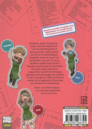 lshidaira, petite frappe de lycée, travaille désormais comme bibliothécaire à temps partiel. L'été touche à sa fin et la bibliothèque s'apprête à fermer pour son récolement annuel. Curieux, Ishidaira prête main-forte à l'équipe et participe à l'inventaire minutieux des collections. L'apparition de lettres étranges glissées entre les pages de certains livres lui révèle un côté sombre du métier et lui apprend à faire face aux situations inattendues. Gérer une bibliothèque, ce n'est pas seulement aimer les livres.