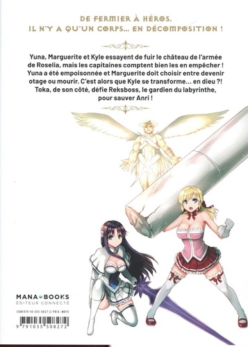 De fermier à héros, il n'y a qu'un corps... en décomposition ! Yuna, Marguerite et Kyle essayent de fuir le château de l'armée de Roselia, mais les capitaines comptent bien les en empêcher ! Yuna a été empoisonnée et Marguerite doit choisir entre devenir otage ou mourir. C'est alors que Kyle se transforme... en dieu ? ! Toka, de son côté, défie Reksboss, le gardien du labyrinthe, pour sauver Anri !
