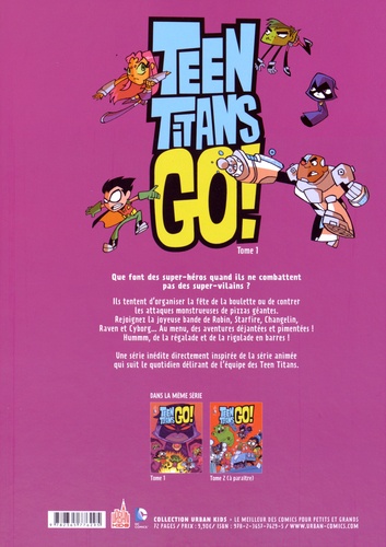 Rejoignez la joyeuse bande de Robin, Starfire, Beast Boy, Raven et Cyborg ! Quand ils ne combattent pas les super-vilains, ils tentent d'organiser la fête de la boulette ou de partir en quête du sandwich parfait en contrant les attaques monstrueuses de pizzas géantes. D'autres aventures savoureuses et pimentées au menu de Teen Titans Go ! Hummm, de la régalade et de la rigolade en barres !