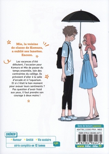 Mie, la voisine de classe de Komura, a oublié ses lunettes. Encore. Les vacances d'été débutent, l'occasion pour Komura et Mie de passer du temps ensemble, loin des contraintes du collège. Ils prévoient d'aller à la salle d'arcade et à l'aquarium. Et si c'était le bon moment pour avouer leurs sentiments ? Pas question d'avoir froid aux yeux, il faut prendre son courage à deux mains !