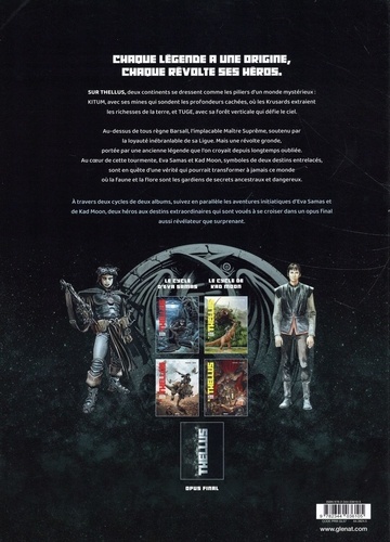 Quand la révolte gronde... Six mois après les événements de Kitum, à des milliers de kilomètres de là, dans le territoire reculé de Tuge, la vie de Kad-Moon, héritier du Maître Suprême Bars-All, est bouleversée. Une révolte populaire a éclaté, alimentée par les cris du peuple clamant le nom d'Eshtar. Les rues sont rouges du sang des Maîtres, et Kad-Moon échappe de justesse au massacre grâce à l'aide de sa servante Lyn, une Fange. Doté d'un mépris inné pour le peuple qu'il considère comme inférieur et ignorant, Kad-Moon s'enfuit dans la nuit. Poursuivi et protégé par Govin, lui aussi un Fange, sa fuite aux multiples péripéties prend un tournant inattendu lorsqu'il découvre le second fragment de l'Arche, l'ancien vaisseau spatial des Maîtres qui s'est écrasé mille ans plus tôt sur le Mont Aldaron. A l'intérieur de cette épave, il trouve un message holographique détérioré laissé par un Maître énigmatique : le légendaire Eshtar... Entourée de deux dessinateurs talentueux, Carlos Gómez et Laura Zuccheri, la scénariste Simona Mogavino signe une grande saga SF empreinte de mythologie, qui nous projette sur une planète inconnue. A travers deux cycles de deux albums, nous suivons les deux destins parallèles de Kad-Moon et d'Eva-Samas, qui sont voués à se croiser dans un cinquième opus pour la révélation finale ! Dans cette épopée captivante, Eva et Kad-Moon, se retrouvent au coeur d'une aventure initiatique extraordinaire qui va bouleverser l'ordre établi sur la Planète Thellus. Leur combat interroge les notions de bien et de mal, de domination et de liberté. Un space opera époustouflant à ne pas manquer où la guerre, l'innovation et la nature sauvage s'entremêlent.