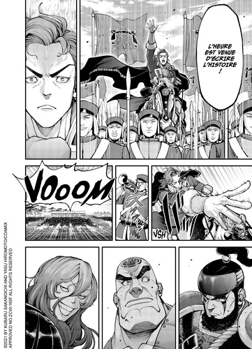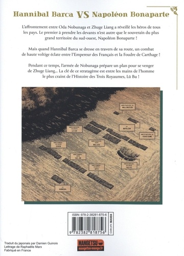 Hannibal Barca VS Napoléon Bonaparte L'affrontement entre Oda Nobunaga et Zhuge Liang a réveillé les héros de tous les pays. Le premier à prendre les devants n'est autre que le souverain du plus grand territoire du sud-ouest, Napoléon Bonaparte ! Mais quand Hannibal Barca se dresse en travers de sa route, un combat de haute voltige éclate entre l'Empereur des Français et la Foudre de Carthage ! Pendant ce temps, l'armée de Nobunaga prépare un plan pour se venger de Zhuge Liang... La clé de ce stratagème est entre les mains de l'homme le plus craint de l'Histoire des Trois Royaumes, Lü Bu ! Première oeuvre du dessinateur Sakanoichi Kubaru et du scénariste Hiromoto Yasu, Tengen Hero Wars est publiée depuis 2021 dans le Comic Zenon (Valkyrie Apocalypse). Combats épiques, stratégies et figures historiques seront les maîtres-mots de cet isekai à l'action survoltée ! "Une solide série d'action épique". Coyote Mag