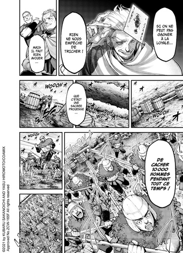 Xiang Yu VS Sanada Yukimura Hannibal Barca se retrouve en difficulté à cause des improbables stratégies que déploie Napoléon Bonaparte. Mais même si la situation semble désespérée, le vieil homme possède bien plus d'un tour dans son sac et reste déterminé à écraser son adversaire ! Ailleurs, Xiang Yu, le conquérant solitaire écrase sur son passage les armées les plus puissantes du pays. Sa prochaine cible ? Le meilleur soldat du Japon, Sanada Yukimura. Une force inarrêtable face à une intelligence incomparable... Lequel l'emportera ? Première oeuvre du dessinateur Sakanoichi Kubaru et du scénariste Hiromoto Yasu, Tengen Hero Wars est publiée depuis 2021 dans le Comic Zenon (Valkyrie Apocalypse). Combats épiques, stratégies et figures historiques seront les maîtres-mots de cet isekai à l'action survoltée ! "Une solide série d'action épique". Coyote Mag