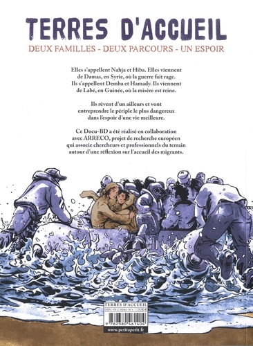 Elles s'appellent Nahba et Hija. Elles viennent de Damas, en Syrie où la guerre fait rage. Ils s'appellent Demba et Djibril. Ils viennent de Labé, en Guinée, où la misère est reine. Ils rêvent d'un ailleurs et vont entreprendre le périple le plus dangereux dans l'espoir d'une vie meilleure. Ce Docu-BD hybride a été réalisé en collaboration avec ARRECO, projet de recherche européen qui associe chercheurs et professionnels du terrain autour d'une réflexion sur l'accueil des réfugiés.