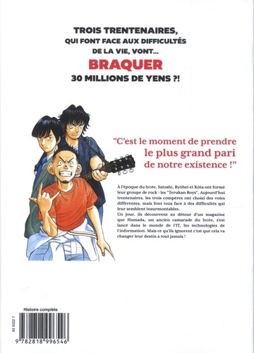 Trois trentenaires, qui font face aux difficultés de la vie, vont... braquer 30 millions de yens ? ! "C'est le moment de prendre le plus grand pari de notre existence ! " A l'époque du lycée, Satoshi, Ryôhei et Kôta ont formé leur groupe de rock : les "Terukan Boys". Aujourd'hui trentenaires, les trois compères ont choisi des voies différentes, mais font tous face à des difficultés qui leur semblent insurmontables. Un jour, ils découvrent au détour d'un magazine que Hamada, un ancien camarade du lycée, s'est lancé dans le monde de l'IT, les technologies de l'information. Mais ce qu'ils ignorent c'est que cela va changer leur destin à tout jamais !