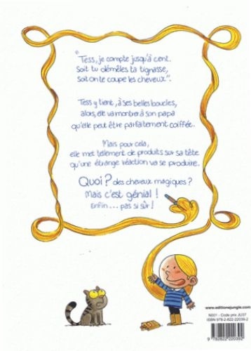 "Tess, je compte jusqu'à cent. Soit tu démêles ta tignasse, soit on te coupe les cheveux". Tess y tient, à ses belles boucles, alors, elle va montrer à son papa qu'elle peut être parfaitement coiffée. Mais pour cela, elle met tellement de produits sur sa tête qu'une étrange réaction va se produire. Quoi ? Des cheveux magiques ? Mais c'est génial ! Enfin… pas si sûr !