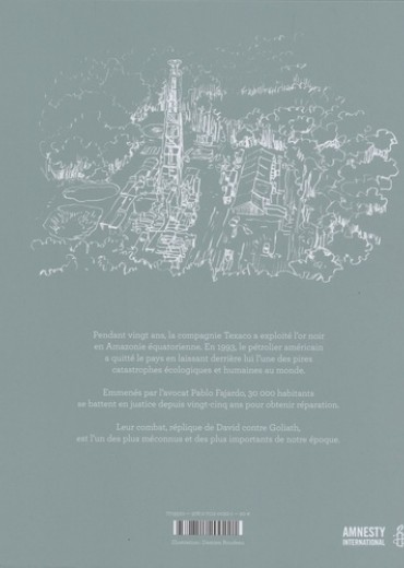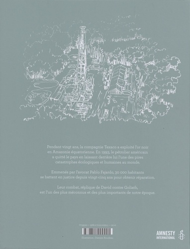 Pendant vingt ans, la compagnie Texaco a exploité l'or noir en Amazonie équatorienne. En 1993, le pétrolier américain a quitté le pays en laissant derrière lui l'une des pires catastrophes écologiques et humaines au monde. Emmenés par l'avocat Pablo Fajardo, 30 000 habitants se battent en justice depuis vingt-cinq ans pour obtenir réparation. Leur combat, réplique de David contre Goliath, est l'un des plus méconnus et des plus importants de notre époque.