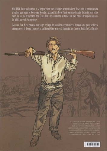 Mai 1871. Pour échapper à la répression des troupes versaillaises, Bravado le communard s'embarque pour le Nouveau Monde. Accueilli à New York par une bande de justiciers et de hors la loi, sa traversée des Etats -Unis le conduira a Dallas oh des exilés français tentent de bâtir une cité utopique. Dans ce Far West encore sauvage, refuge de tous les aventuriers, Bravado ne peut se fier à personne et il devra conquérir sa liberté les armes à la main, de la côte Est à la Californie.