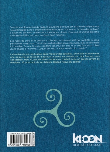 D'après les informations du pape, la Couronne de fleurs est en train de préparer une nouvelle frappe dans le duché de Normandie, qu'on surnomme "le pays des esclaves" à cause de ses mercenaires tous identiques, clones d'un seul et unique branchu. La brigade d'élite est donc envoyée pour l'abattre... Les ruses de Luka et la présence d'Eudes, un puissant allié qui contrôle le sang, permettent au groupe d'atteindre sa destination sans encombre, mais la cible reste introuvable. Ce que le jeune capitaine ignore, c'est que lui et Zoé font aussi l'objet d'une chasse à l'homme... Lequel des deux camps sera le plus rapide ? La lumière du son, seul espoir dans l'horreur des batailles... D'un trait vif et nerveux, une nouvelle génération d'auteurs invente un monde de dark fantasy sans concession. Mais ici, pas de héros surdoué au combat, juste un garçon rêvant de musique... Et pourtant, de ses talents dépend l'issue du conflit !