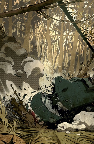 Découvrez les événements fondateurs de The Cape, le comics inspiré d'une nouvelle de Joe Hill (Locke & Key). 1969. La guerre du Viêt Nam fait rage. L'hélicoptère du capitaine Gordon Chase, pilote d'évacuation médicale pour l'armée américaine, est abattu en territoire ennemi. Ses hommes et lui sont obligés de fuir, poursuivis par les soldats viét-cong. Bien vite, ils découvriront que le mugissement des armes automatiques n'est pas le seul danger dans le jungle, et une rencontre étrange dans un camp de prisonniers fera à jamais basculer le destin du capitaine Chase... Un comics viscéral qui retrace le destin poignant et fantastique du père d'Eric, des années avant les événements tragiques de The Cape, nommé aux Eisner Awards du meilleur one shot.