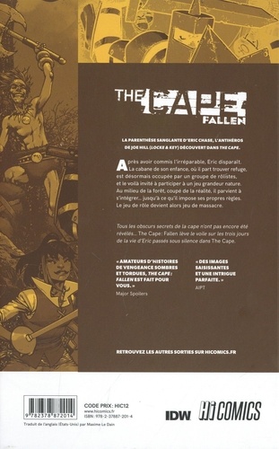 Après avoir commis l'irréparable, Eric disparais. La cabane de son enfance, où il part trouver refuge, est désormais occupée par un groupe de rôlistes, et le voilà invité à participer à un jeu grandeur nature. Au milieu de ta forêt, coupé de la réalité, il parvient à s'intégrer... jusqu'à ce qu'il impose ses propres règles. Le jeu de rôle devient alors jeu de massacre. Tous les obscurs secrets de la cape n'ont pas encore été révélés... The Cape : Fallen lève le voile sur les trois jours de la vie d'Eric passés sous silence dans The Cape.