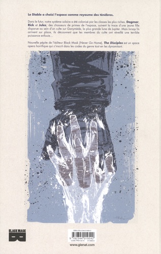 Le diable a fait de l'espace son royaume des ténèbres Dans le futur, notre système solaire a été colonisé par les classes les plus riches. Dagmar, Rick et Jules, des chasseurs de primes de l'espace, suivent la trace d'une jeune fille disparue au sein d'un culte sur Ganymede, la plus grande lune de Jupiter. Mais lorsqu'ils arrivent sur place, ils découvrent que les membres du culte ont réveillé une terrible puissance enfouie... Nouvelle pépite de l'éditeur Black Mask (Never Go Home), The Disciples est un space opera horrifique qui s'inscrit dans les codes du genre tout en les dynamitant. Quand la terreur sourde de Alien rejoint l'horreur métaphysique de Prince des ténèbres !