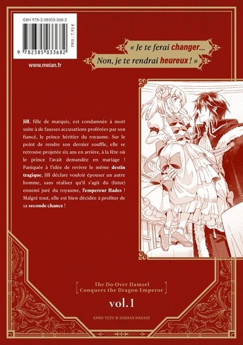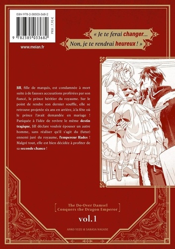 " Je te ferai changer... Non, je te rendrai heureux ! " Jill, fille de marquis, est condamnée à mort suite à de fausses accusations proférées par son fiancé, le prince héritier du royaume. Sur le point de rendre son dernier souffle, elle se retrouve projetée six ans en arrière, à la fête où le prince l'avait demandée en mariage ! Paniquée à l'idée de revivre le même destin tragique, Jill déclare vouloir épouser un autre homme, sans réaliser qu'il s'agit du (futur) ennemi juré du royaume, l'empereur Hades ! Malgré tout, elle est bien décidée à profiter de sa seconde chance ! Après avoir échappé à la mort, elle compte bien profiter de la seconde chance qui s'offre à elle ! Projetée six ans en arrière, Jill a la chance de pouvoir recommencer une nouvelle vie ! Condamnée à mort suite à de fausses accusations, elle est projetée six ans en arrière bien décidée à changer son destin ! Pour éviter la voie qui mènera à son exécution... elle se rapproche de son (futur) pire ennemi pour conquérir son coeur !!! La " déesse de la guerre " demande l'empereur maudit (sans prévenir) en mariage ? !