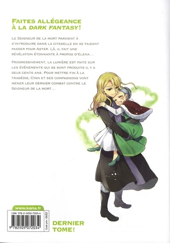 Faites allégeance à la dark fantasy ! Le Seigneur de la mort parvient à s'introduire dans la citadelle en se faisant passer pour Aster. Là, il fait une révélation étonnante à propos d'Elena... Progressivement, la lumière est faite sur les événements qui se sont produits il y a deux cents ans. Pour mettre fin à la tragédie, Cyan et ses compagnons vont mener leur dernier combat contre le Seigneur de la mort... Dernier tome !