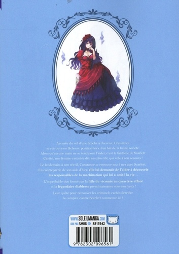 Quand une douce et naïve noble s'allie au spectre d'une femme impitoyable pour mettre au jour un immonde complot qui gangrène la haute société... Une enquête tendue et cruelle ! Constance Grail et Scarlett Castiel sont deux femmes que tout oppose. La première est l'héritière d'une noble famille désargentée ; la seconde le spectre d'une femme perfide injustement condamnée à mort. De bals somptueux en luxueuses demeures, elles vont unir leurs forces pour retrouver les coupables de la machination ayant coûté la vie de Scarlett dix ans plus tôt...