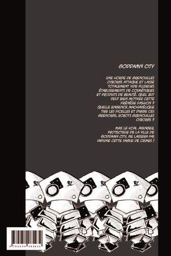 Goddamn City Une horde de grenouilles cyborgs attaque et laisse totalement vide plusieurs établissements de cosmétiques et produits de beauté. Quel but peut bien motiver cette frénésie fashion ? Quelle engence machiavélique tire les ficelles et dirige ces Grenorgs, robots grenouilles cyborgs ? Mais le Koal Avenger, protecteur de la ville de Goddamn City, ne laissera pas impunie cette vague de crimes !