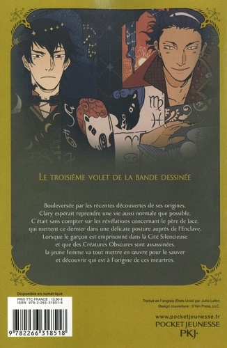L'adaptation en bande dessinée de la série à succès The Mortal Instruments , avec des bonus inédits ! Bouleversée par les récentes découvertes de ses origines, Clary espérait reprendre une vie aussi normale que possible. C'était sans compter sur les révélations concernant le père de Jace, qui mettent ce dernier dans une délicate posture auprès de l'Enclave. Lorsque le garçon est emprisonné dans la Cité Silencieuse et que des Créatures Obscures sont assassinées, la jeune femme va tout mettre en oeuvre pour le sauver et découvrir qui est à l'origine de ces meurtres.