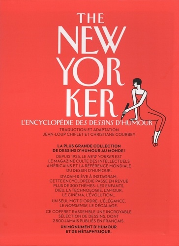 La plus grande collection de dessins d'humour au monde ! Depuis 1925, le New Yorker est le magazine culte des intellectuels américains et la référence mondiale du dessin d'humour. D'Adam & Eve a Instagram, cette encyclopédie passe en revue plus de 300 thèmes : les enfants, dieu, la technologie, l'amour, le cinéma, l'évolution... Un seul mot d'ordre : l'élégance, le nonsense, le décalage. Ce coffret rassemble une incroyable sélection de dessins, dont 2500 jamais publiés en français. Un monument d'humour et de métaphysique.