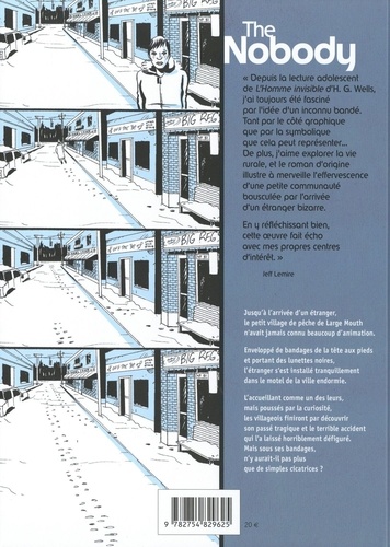 La petite ville de Large Mouth n'a jamais connu beaucoup d'agitation... du moins jusqu'à l'arrivée de Griffen, un étranger recouvert de bandages de la tête aux pieds. Poussée par la curiosité, une jeune fille nommée Vickie découvre l'histoire tragique de cet homme et de l'étrange accident qui l'aurait défiguré. Mais ces bandages ne cachent-ils que des cicatrices ? Il suffit d'une disparition pour que la population se retourne contre Griffen, pour qu'il soit traqué, qu'on menace de le démasquer et de dévoiler tous ses secrets. L'auteur revisite, avec une véritable malice, le mythe de l'Homme invisible mais enrichit son récit avec un aspect plus dramatique ; il en fait un prisme, un révélateur de l'identité, des peurs et de la paranoïa pouvant détruire une petite communauté.